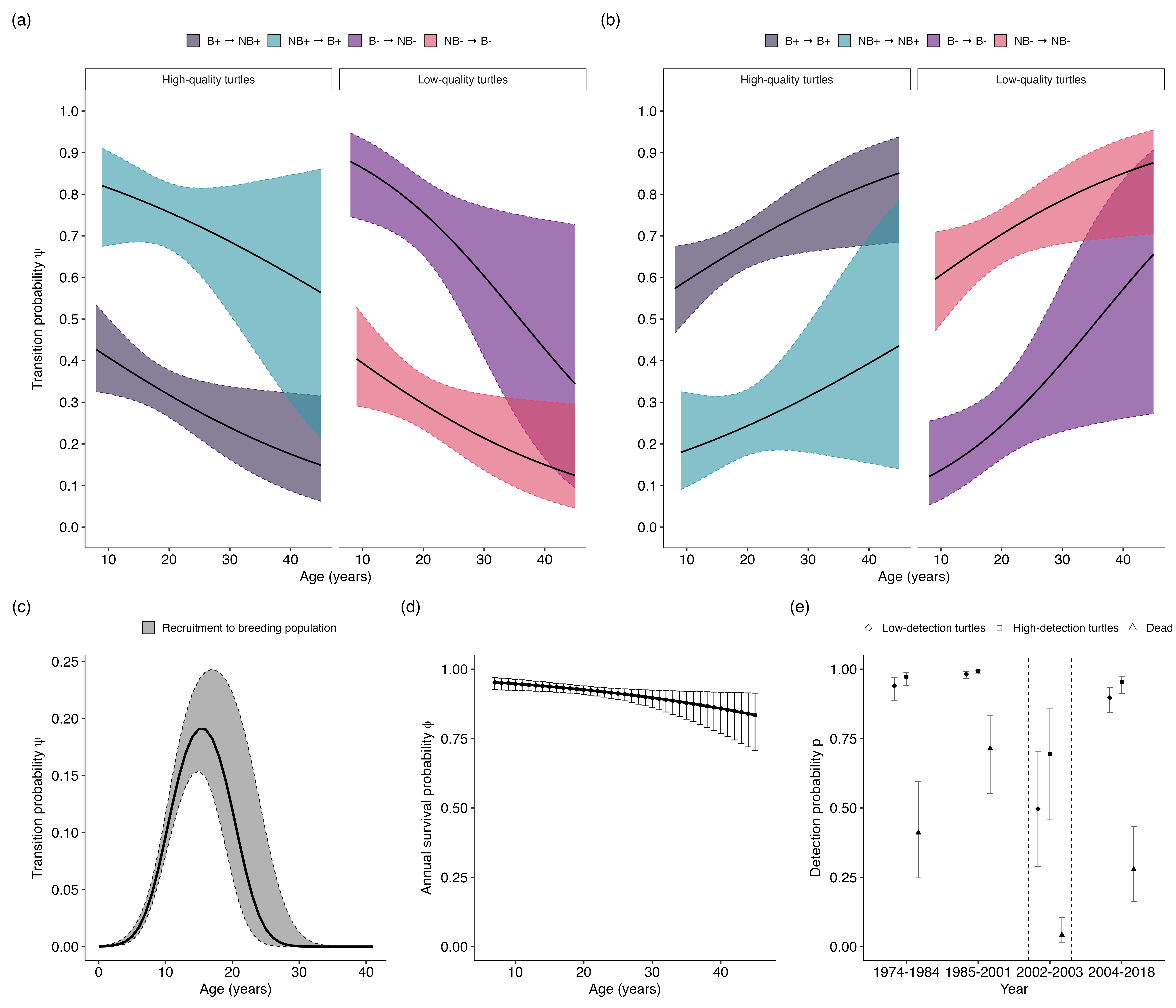 Here, we used a multi-event capture-mark-recapture framework to show that individual quality and age were the primary drivers of reproductive patterns in known-aged captive sea turtles.